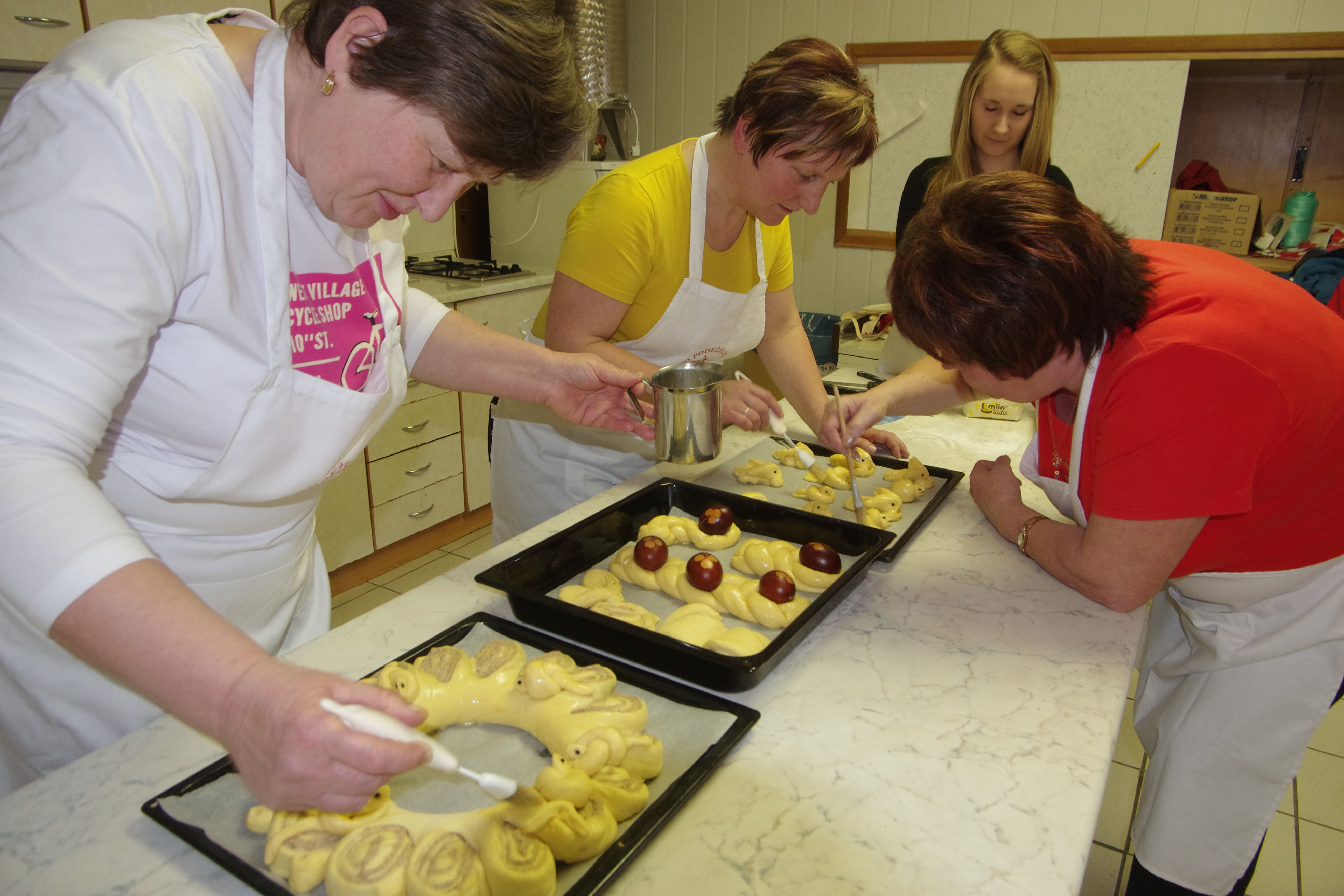 Martina Zupančič je izdelala velikonočni kruh, okrašen z velikonočnim motivom. Tončka Hočevar je izdelala velikonočni venec. Sonja Pokleka, Tjaša in Vida Gros pa smo pobarvale pirhe in izdelale velikonočne okraske, kot so pletenice, ptički, zajčki.