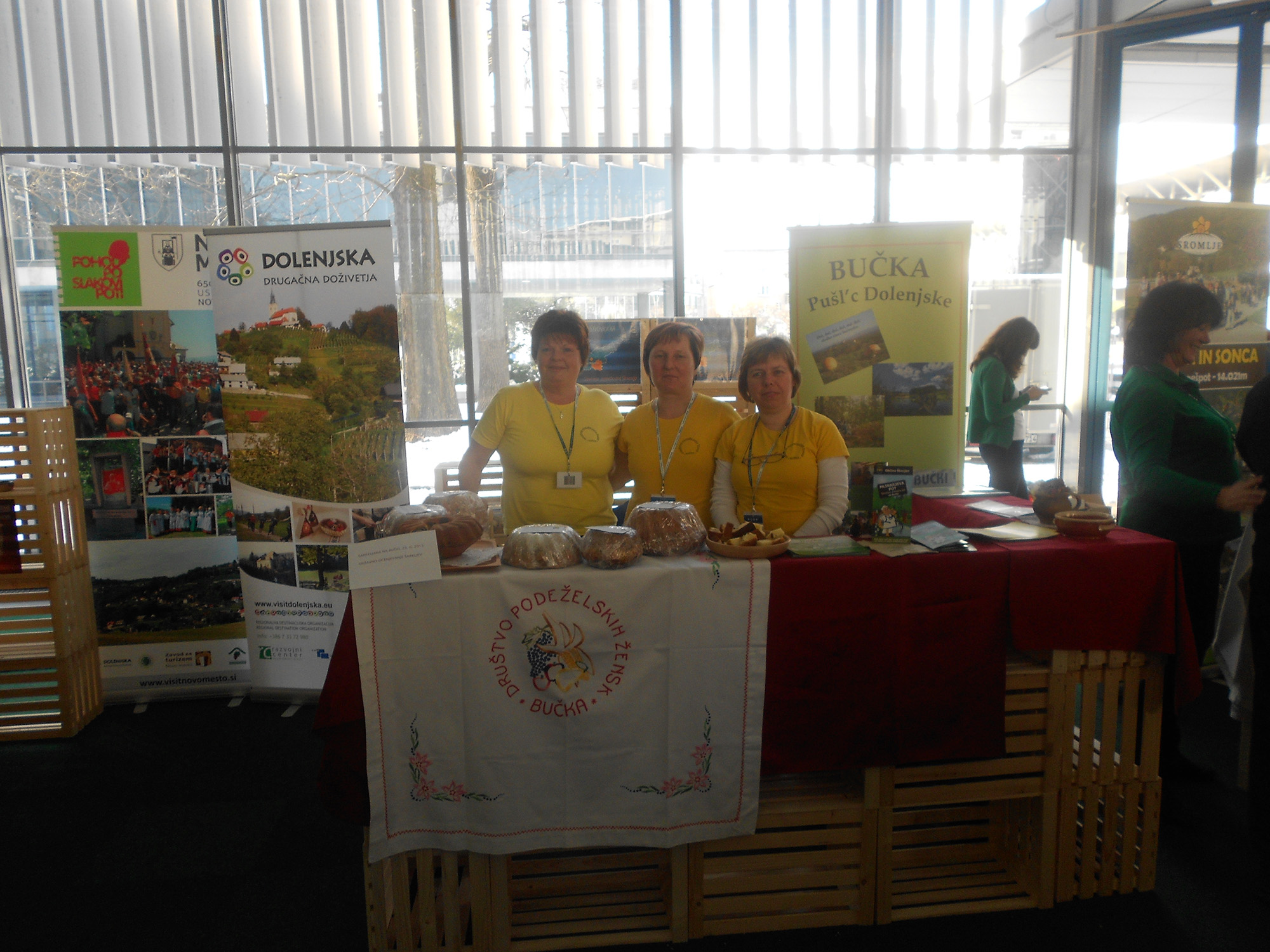 Na sejmu smo predstavile naš kraj Bučko in občino od koder prihajamo. Predstavile smo naše državno tekmovanje- ocenjevanje šarkljev. Ponudile smo kvašene in umešane šarklje in vabile k letošnjemu sodelovanju na tekmovanju. Povezano s šarkeljado smo vabile tudi na semanji dan na Bučki. Obiskovalce pa smo vabile tudi na Mlinarjevo pot, jo podrobno predstavljale in obenem ponudile letak, kjer je ta pot tudi predstavljena. Kar nekaj obiskovalcev je obljubilo, da se bodo zagotovo udeležili tradicionalnega pohoda po Mlinarjevi poti, ki bo letos 23. maja. Sejma se je v soboto udeležilo veliko ljudi. Velik uspeh za nas bo, če bo naše vabilo in predstavitev obrodilo sadove in pripeljalo na Bučko nove ljudi in bodo spoznali, da je Bučka puš ́lc Dolenjske.
