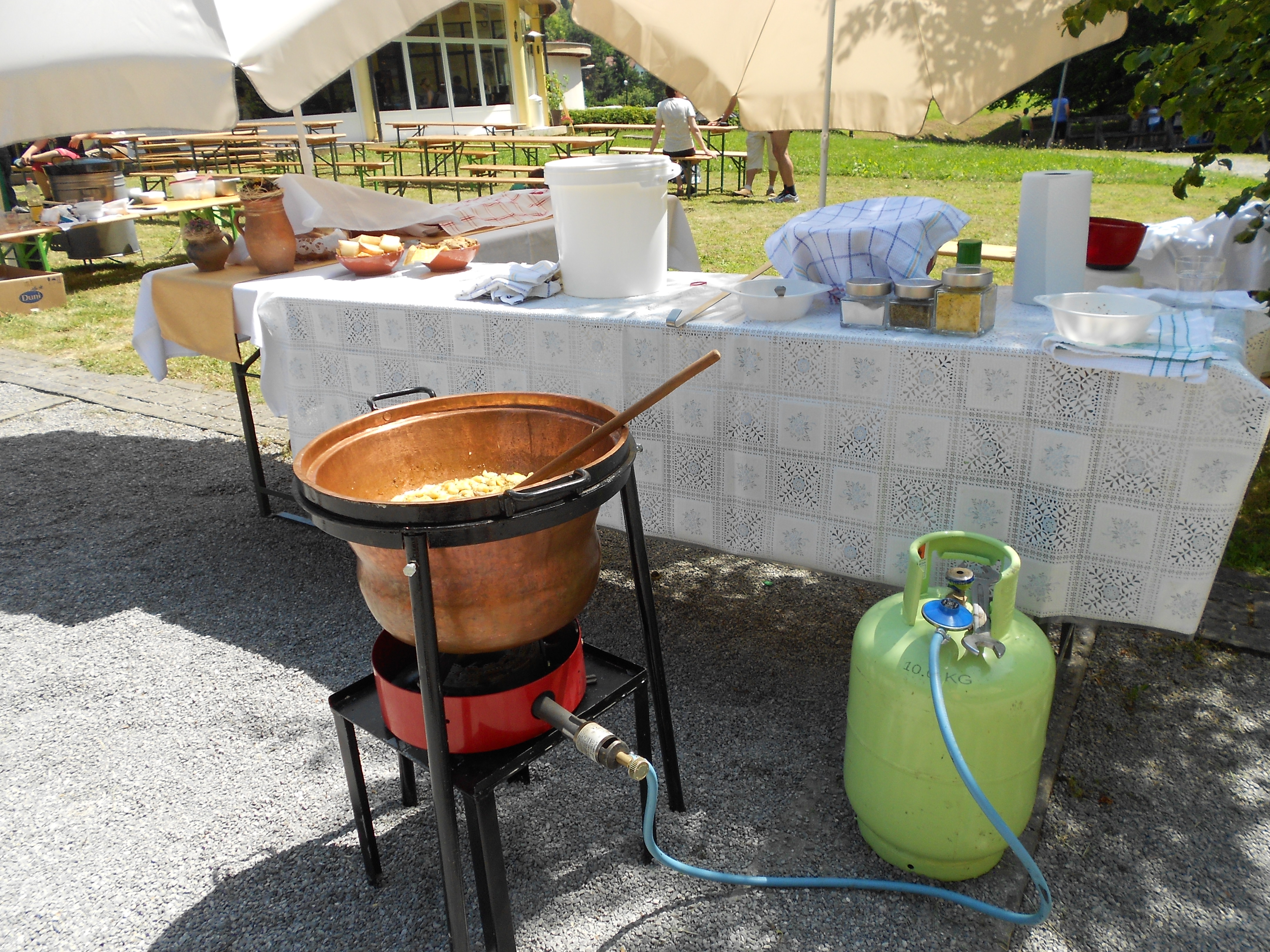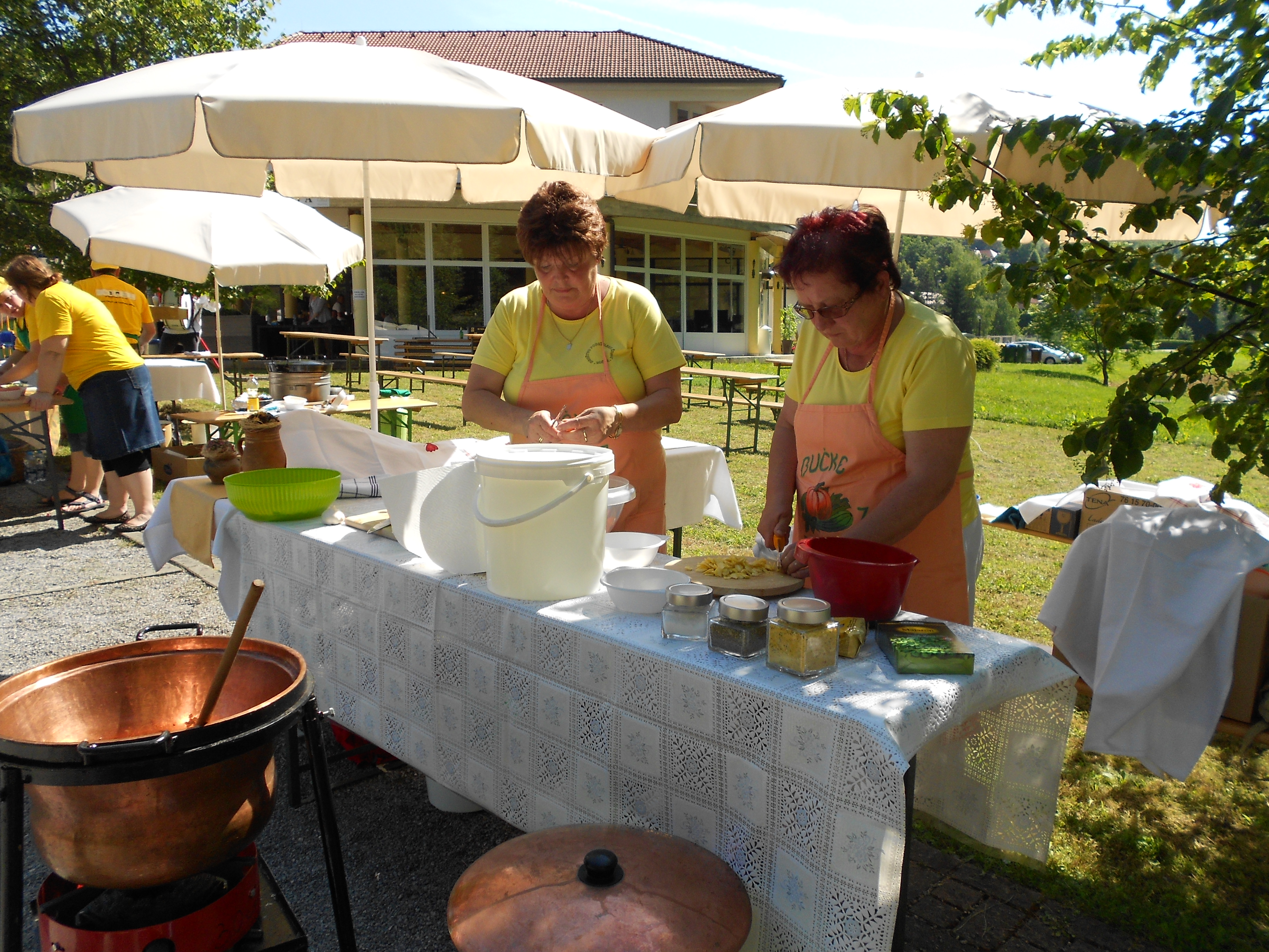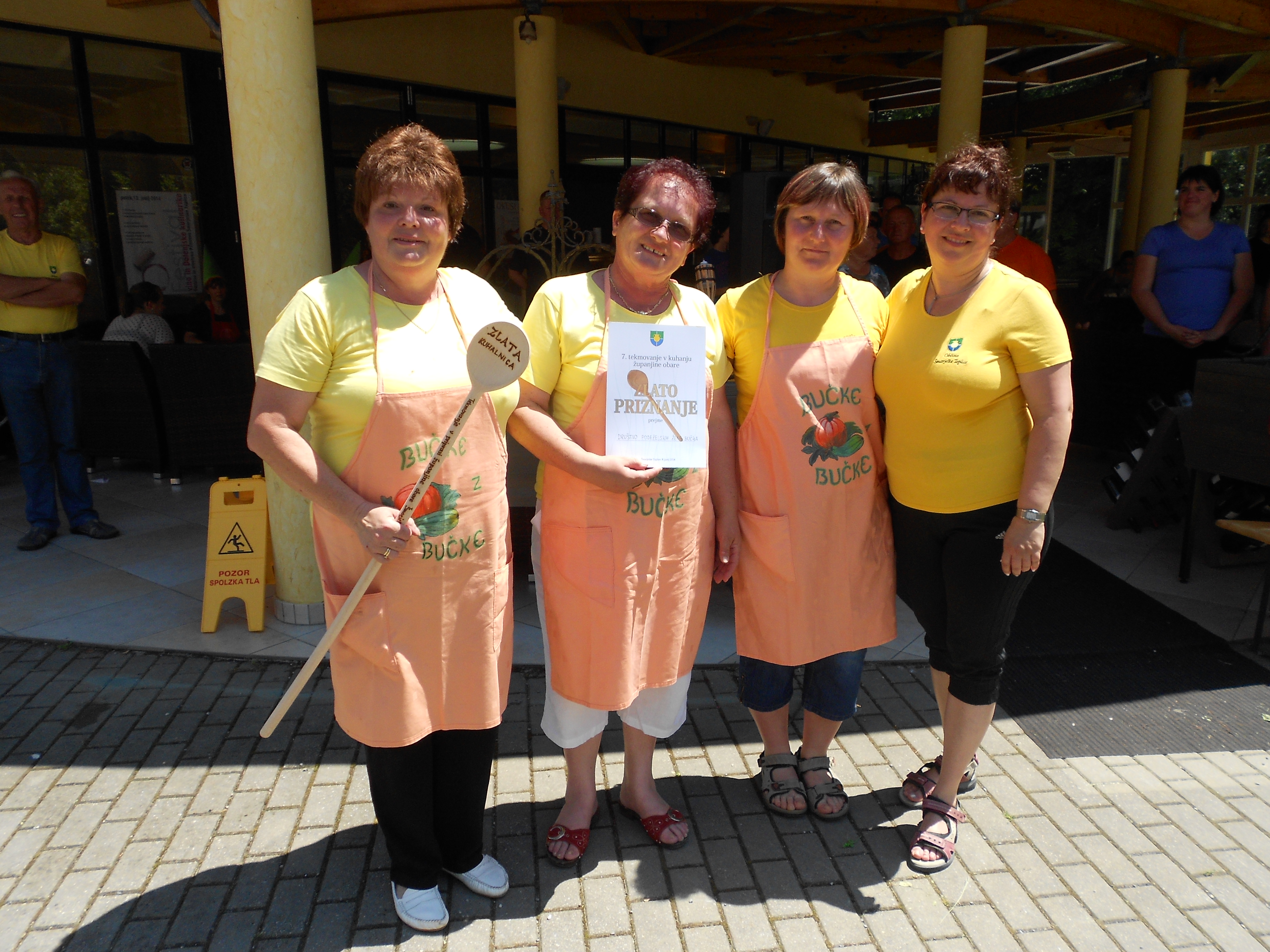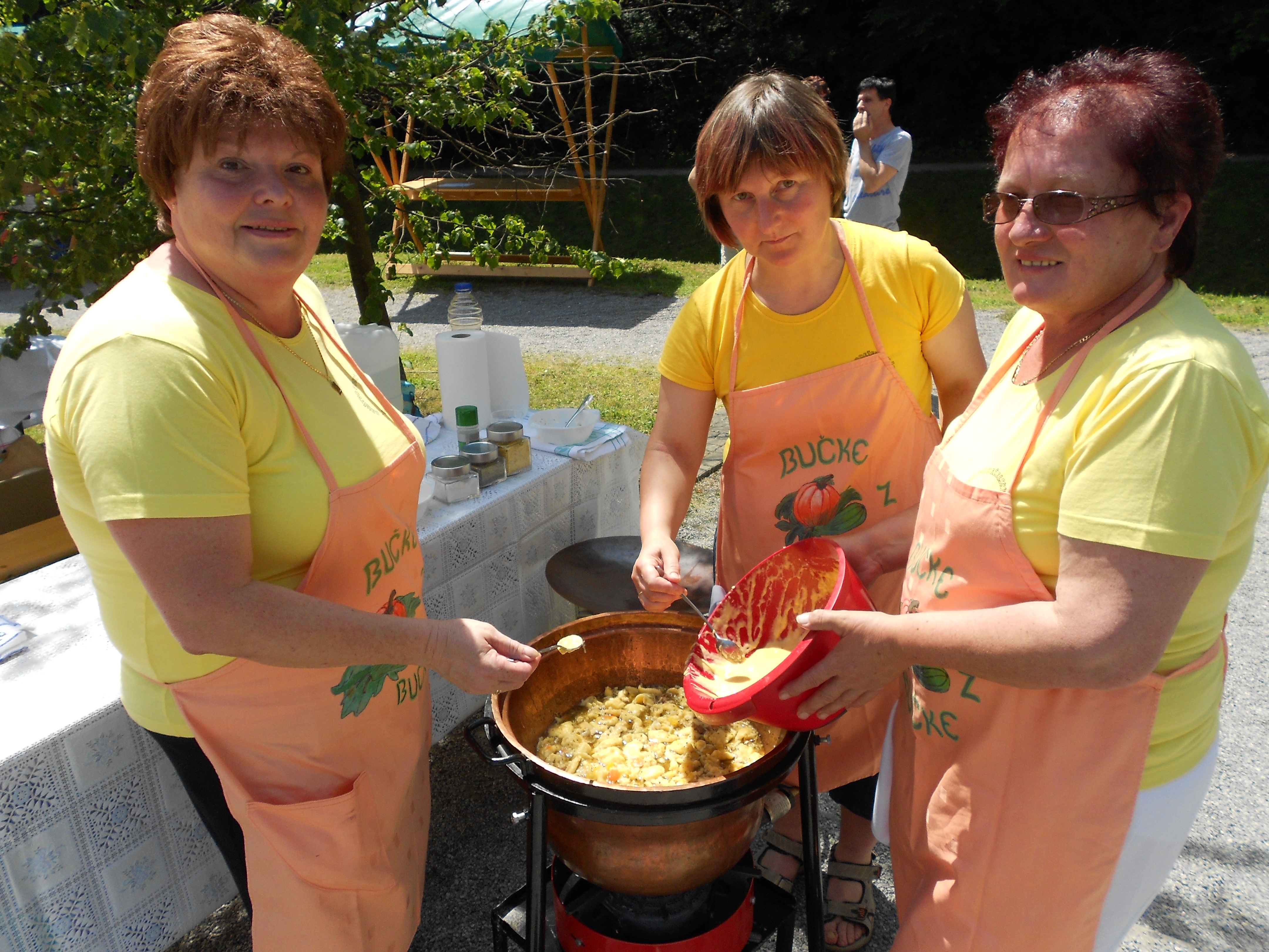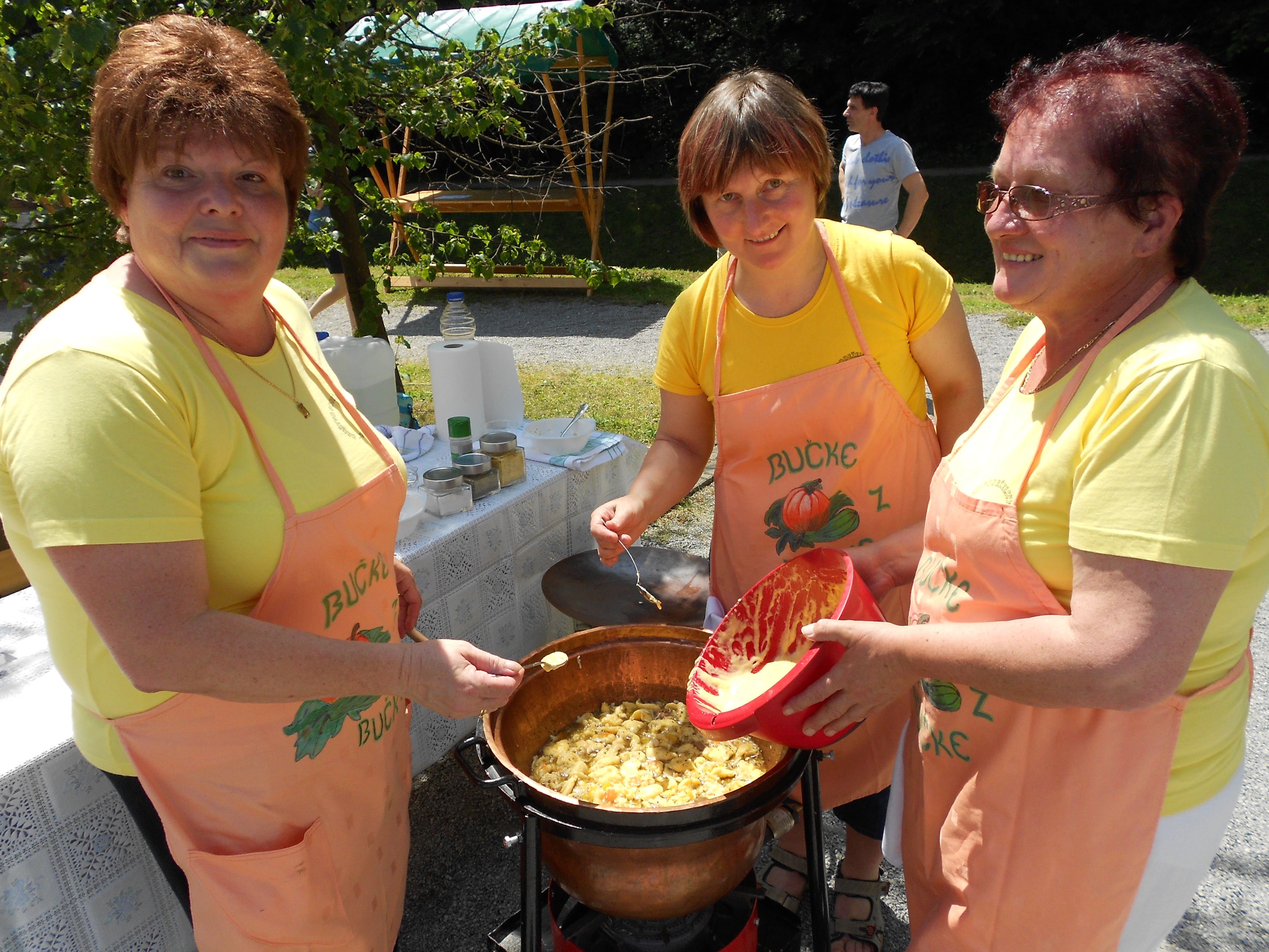 Ekipa smo sestavljale Sonja Pokleka, Branka Lekše in Vida Gros. Tega tekmovanja smo se udeležile tretjič, vsakič v malo drugačni zasedbi. Prvič smo sodelovale l. 2011, na pobudo naše članice Ivi Lanišnik in v sodelovanju s TD predstavljale Bučko. Lani pa smo imele že predpasnike na temo naše obare in kraja od koder prihajamo. Tako se sedaj ekipa imenuje: Bučke z Bučke.